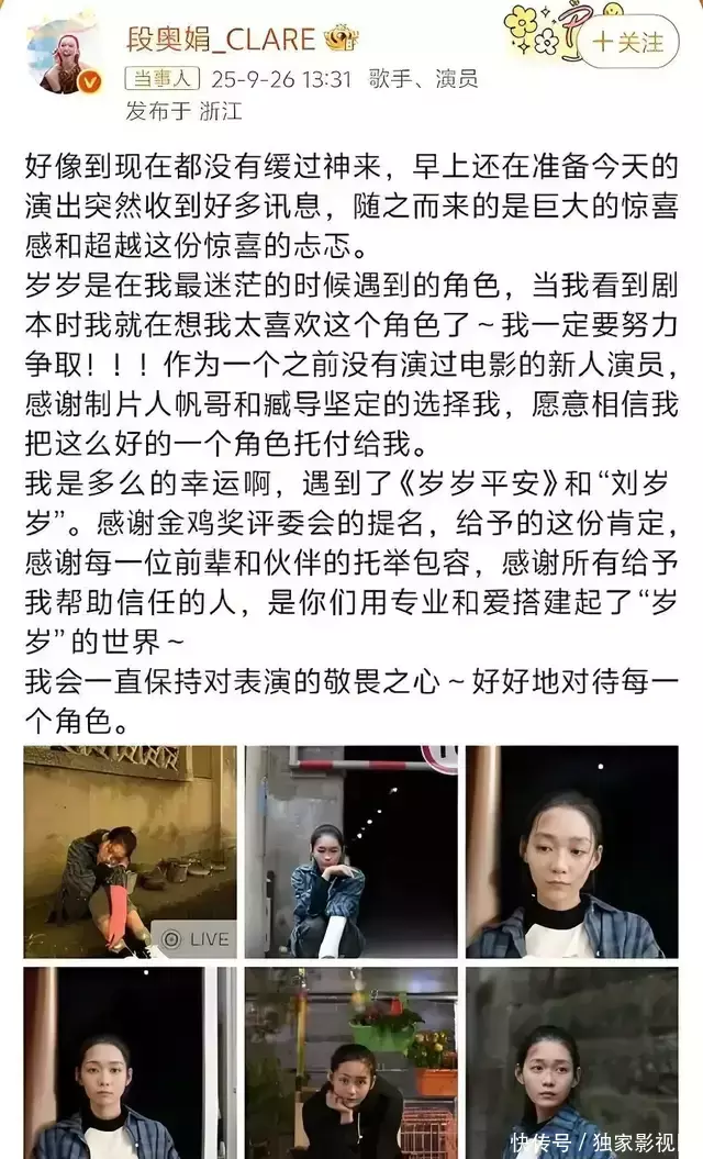 从小就是老天爷追着喂饭吃,共情能力超强的女孩,长大后自然也有更多的可能性值得期待。此次她未能提名,遗憾陪跑的经历也是让一些网友唏嘘不已。除了网友们认为应该提名的作品和演员未能获得金鸡奖评委会认可外,选秀出身的爱豆段奥娟能够凭借主演电影《岁岁平安》一举拿下金鸡奖最佳女主角的提名着实让许多网友觉得不可思议。