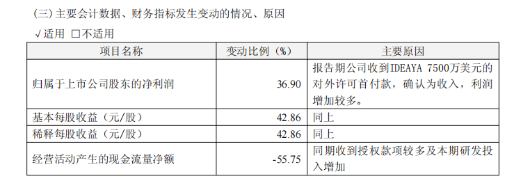 亮眼的业绩背后,非经常性损益贡献不容忽视:报告期内,公司因对外授权合作收到IDEAYA公司7500万美元(约合5.1亿元人民币)首付款,直接推高净利润。若剔除该因素,扣非净利润同比增速将收窄至29.35%。